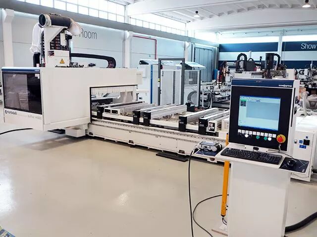 Données particulièresPLAN DE TRAVAIL : Ponts avec ventouses - NOMBRE DE PONTS AVEC VENTOUSE : 8 - NOMBRE D'AXES CONTROLES : 5 axes - NOMBRE TOTAL DE BROCHES DE PERCAGE 22 - MOMBRE TOTAL DE POSITIONS MAGASIN D'OUTIL : 36 - NOMBRE DE ZONES DE TRAVAIL : 1 - MAGASIN D'OUTILS : 2