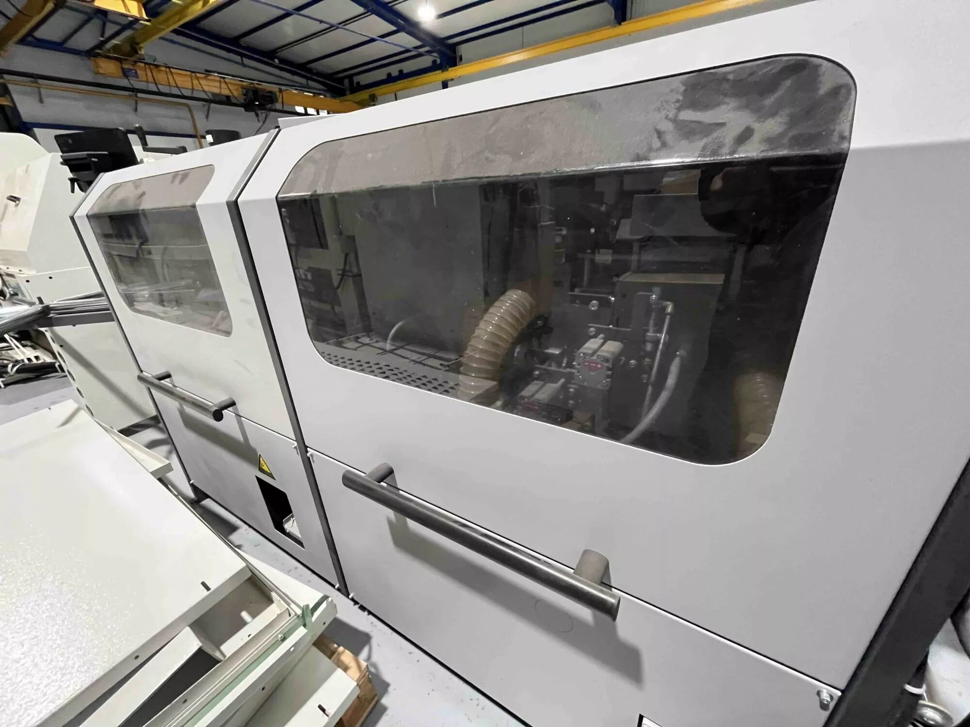 Préfraisage jusqu'à 2 mm d'épaisseur maxi bac de colle à chauffe rapide avec revêtement et sans entretien, station de fraisage HF avec ajustement pneumatique